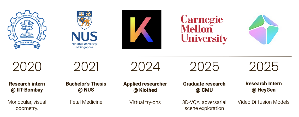 - HeyGen (Research Engineering Intern): camera-motion conditioned video diffusion (ControlNet), large-scale SfM + pose extraction, and data filtering with flow-based signals.